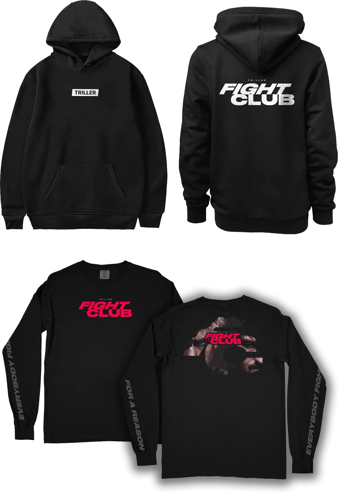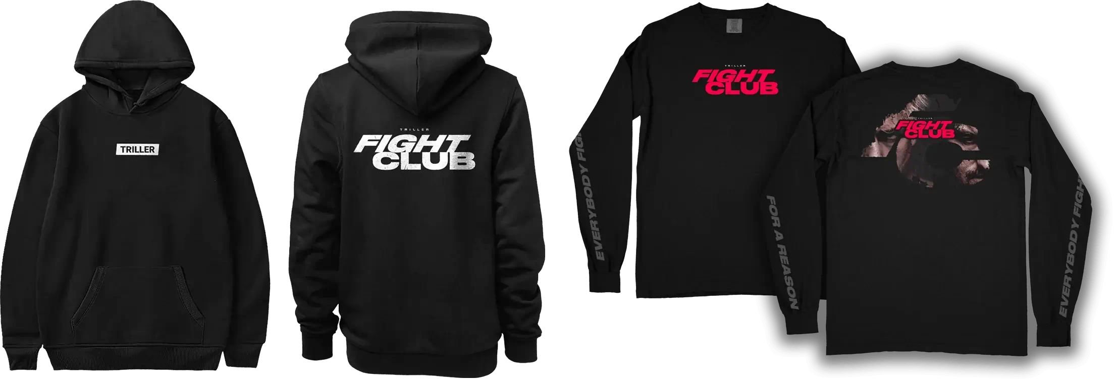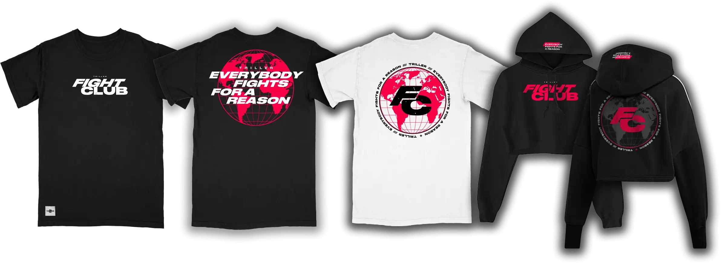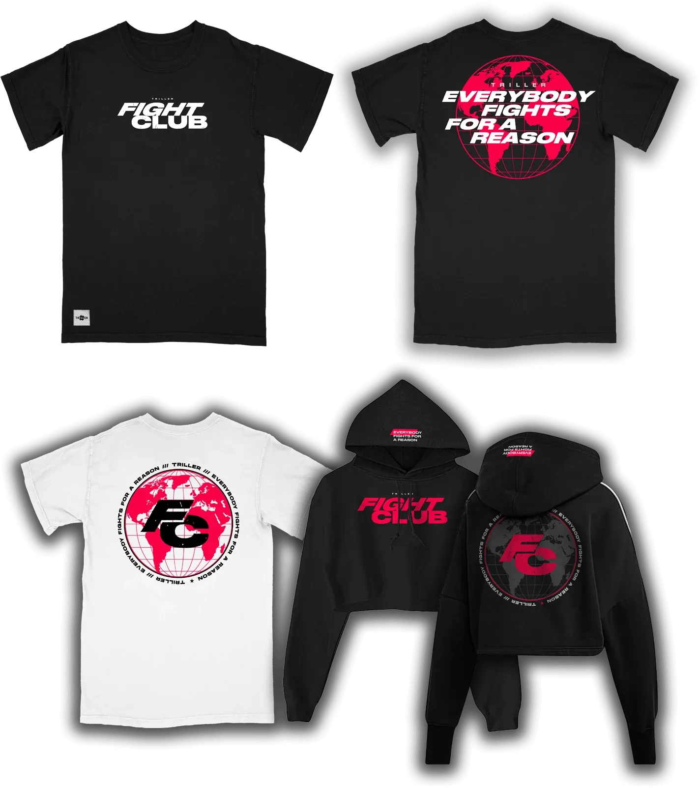 An off-shoot brand sponsored by Triller, Fight Club brings online influencers and professional boxers to fight against each other in the ring. I developed mainline apparel as well as special event apparel for the brand